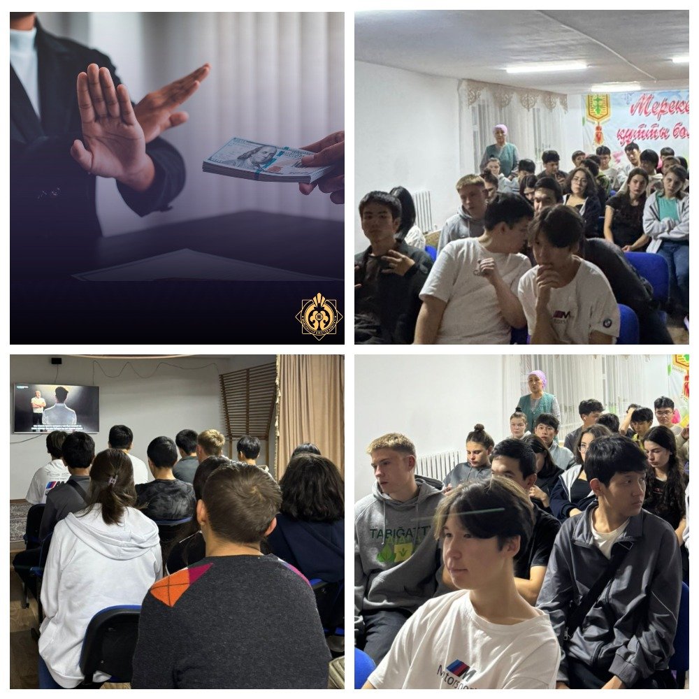 29 қыркүйек күні колледж жатақханасында «Сыбайлас жемқорлық: себептері, салдары және алдын алу жолдары» тақырыбында дәріс өтті.
